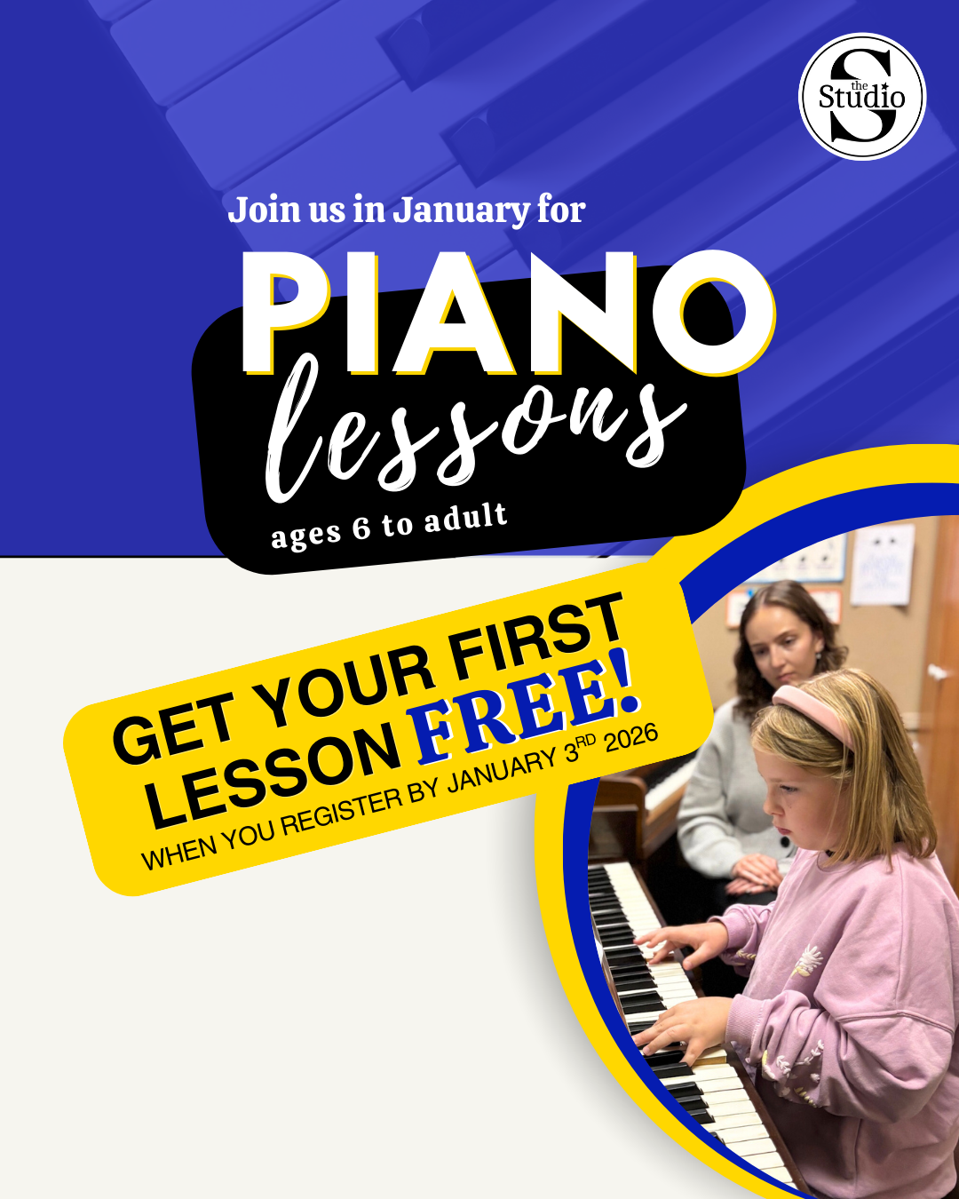 Until Jan 3rd, register for Piano lessons & get your 1st Lesson FREE!