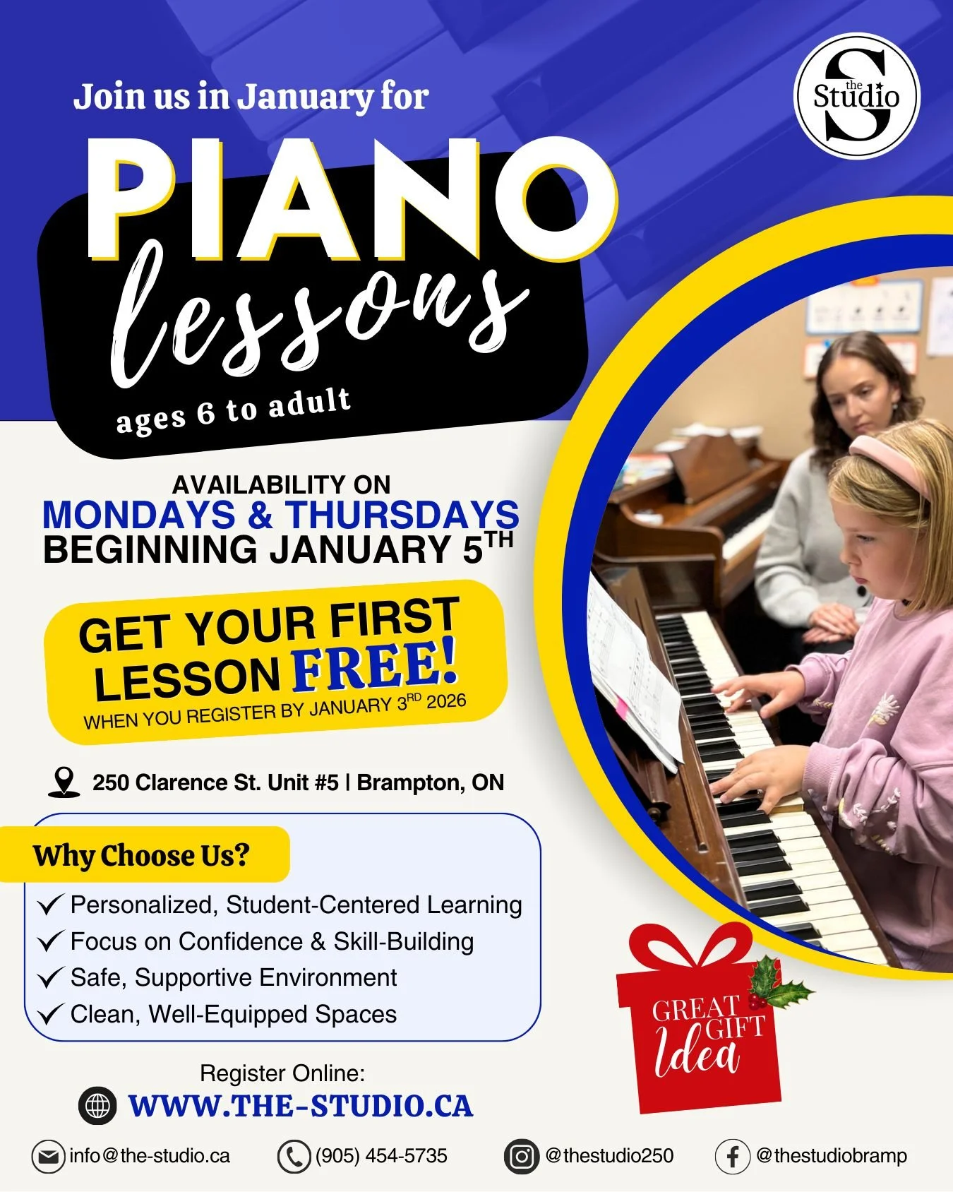 Until Jan 3rd, register for Piano lessons & get your 1st Lesson FREE!
