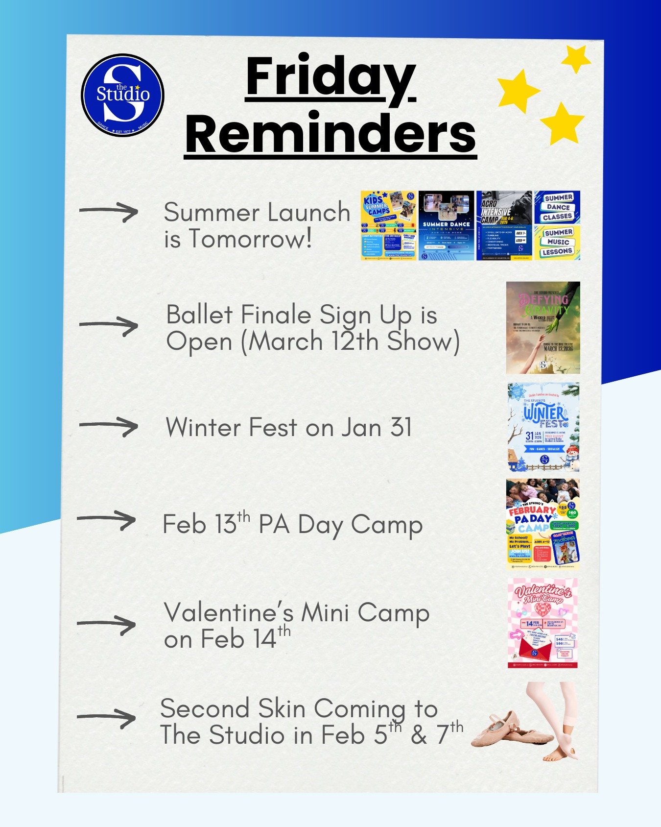 Our team has deep roots in the community - many of our staff grew up at The Studio and now guide the next generation. That sense of belonging is why families return year after year. The Studio truly feels like a second home. Join our family today! Learn more about us.