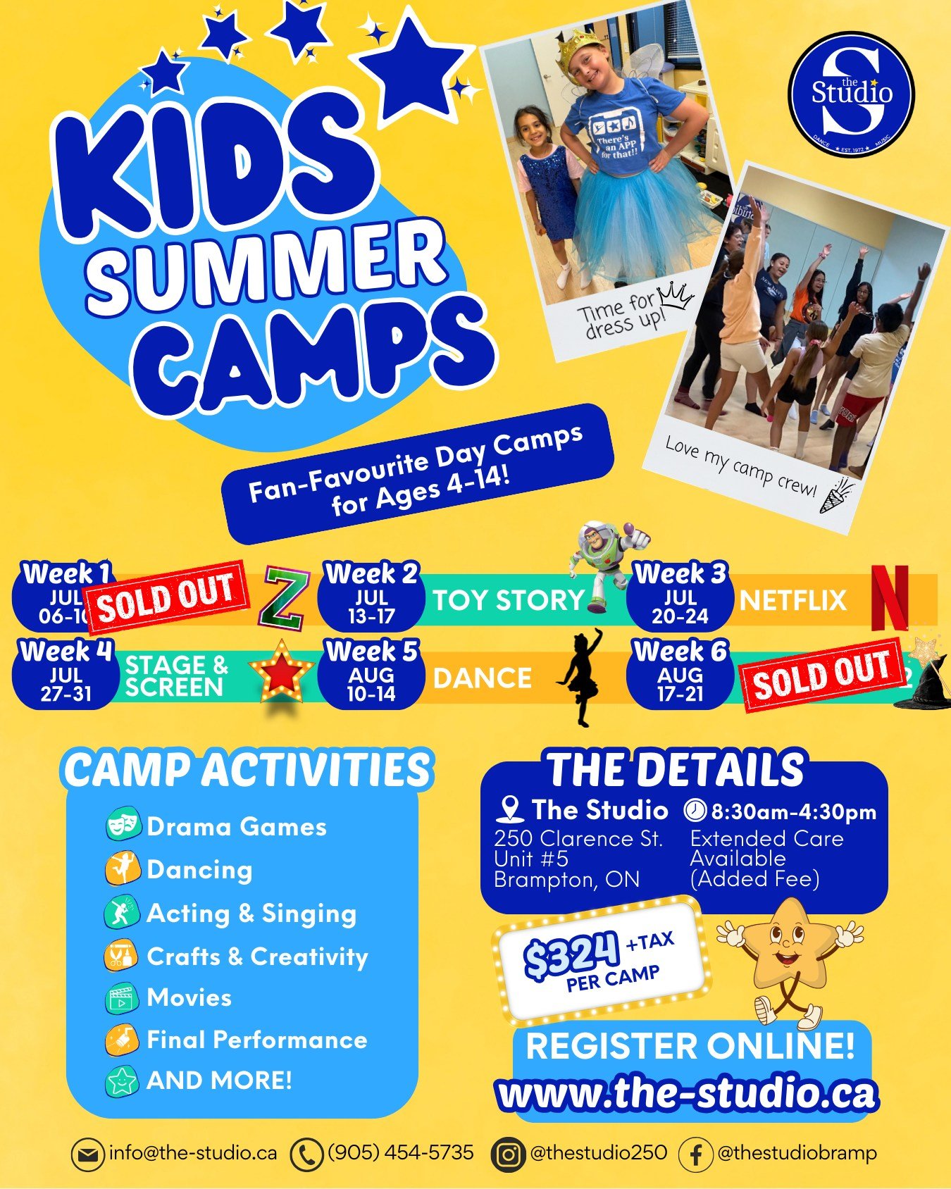 Our team has deep roots in the community - many of our staff members grew up at The Studio and now guide the next generation. That sense of belonging is why families return year after year and call it a second home. Join our family today! Learn more about us.